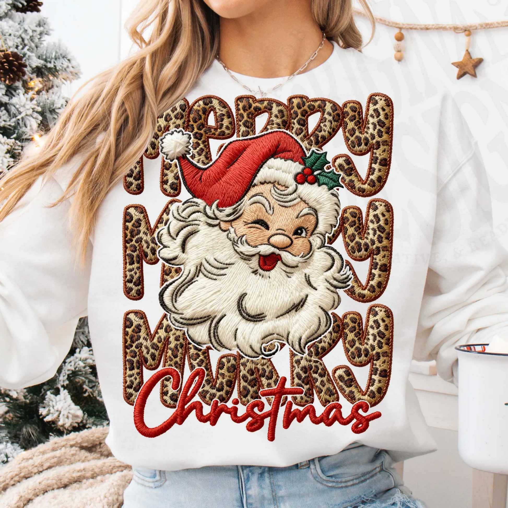 038 - Merry Christmas Santa Cheetah - Tee-shirt - Crewneck or Hooded Sweatshirt