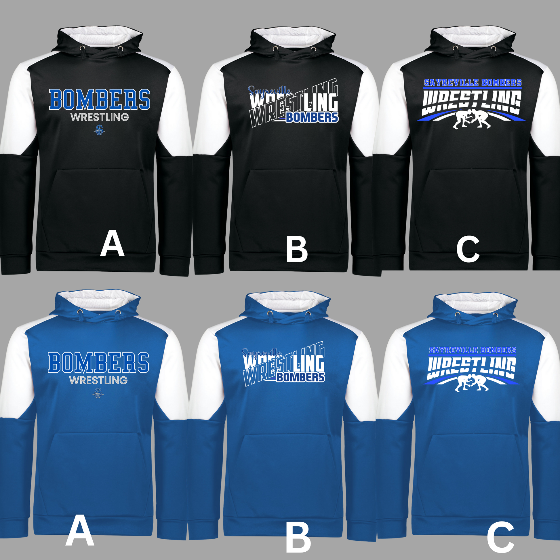 Choose a design: A, B or C.